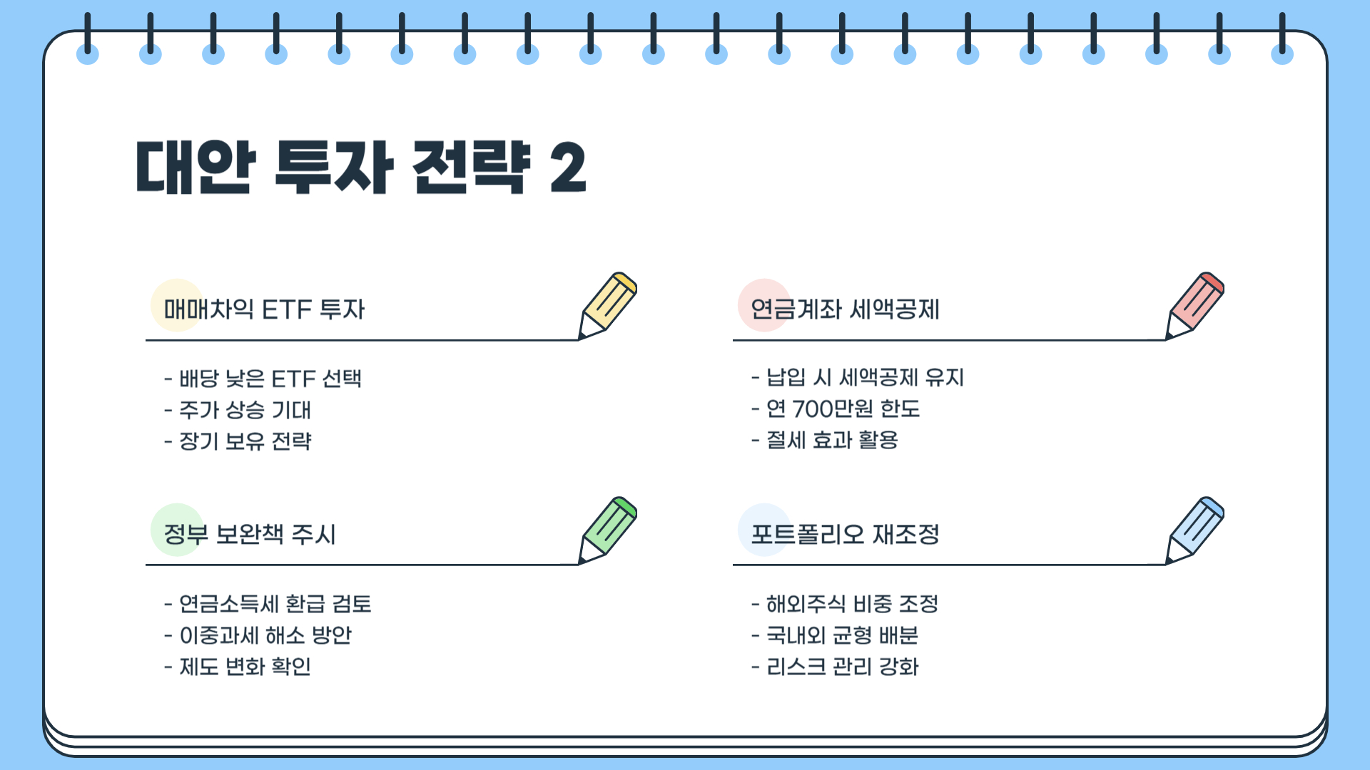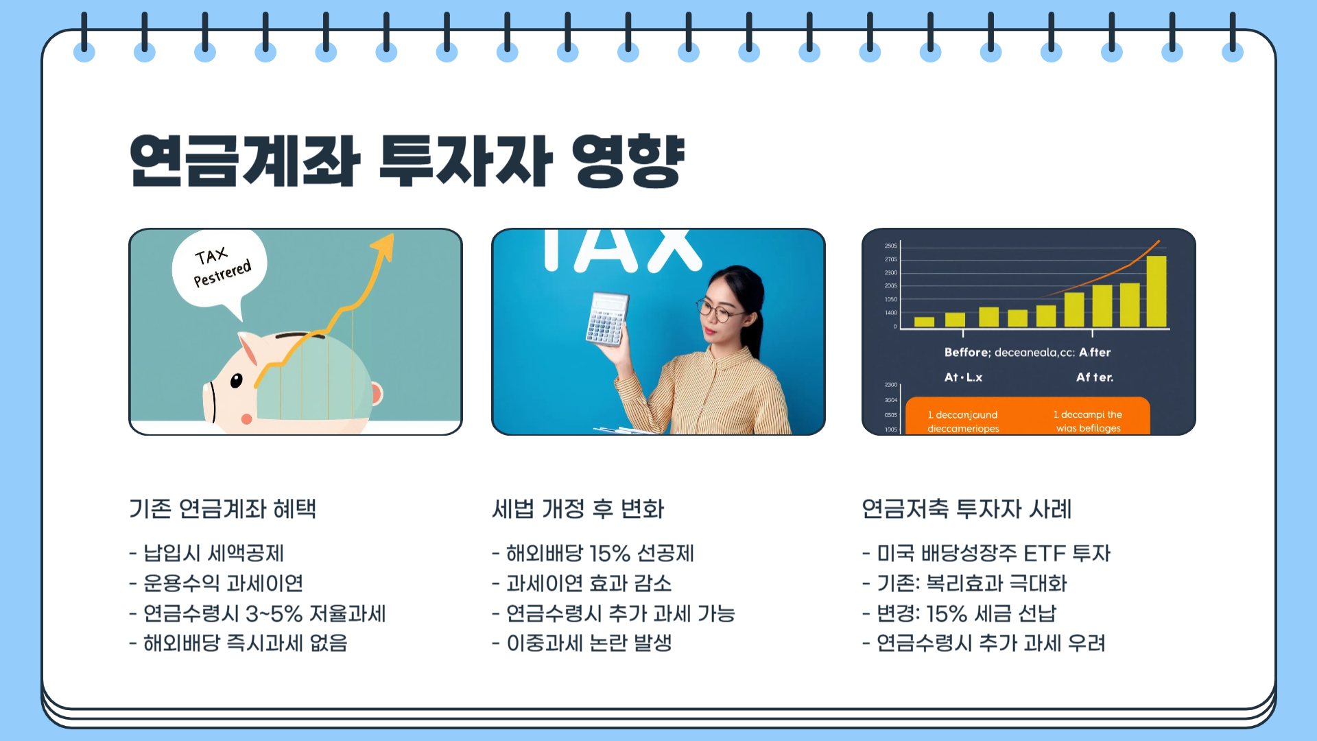 - 정부는 연금소득세 환급 등 투자자 부담을 줄이기 위한 보완책을 검토 중이다.